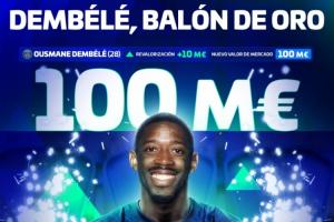 28歲的登貝萊此前身價為9000萬歐元,本賽季他代表巴黎出戰4場比賽貢獻2球1助,而上賽季他的數據是49場比賽33球15助。憑借出色的表現和歐冠、法甲、法國杯三冠王,登貝萊也獲得了今年的金球獎。