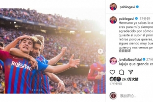 加維社媒曬出與阿爾巴的合照,并寫道:“兄弟,你已經知道你對我來說有多么特別,在我升入一線隊的時候,你的歡迎和引導讓我永遠心懷感激?!?/p>